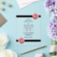 Dieses Design besticht durch elegante rosa Blume. Die blorrosa Rosen in Verbindung mit dem eleganten schwarzen Farbbandbild schaffen einen raffinierten, einfachen Rahmen, der die Formulierung prägt. Die rosa Farbtöne der Blume der Rose kontrastieren mit dem schwarzen Band und der Formulierung, die einen eleganten Stil schaffen. Die Rückseite imitiert die andere Seite. Elegantes Hochzeitsinklusivdesign mit modernen Elementen. Es stehen auch passende Hochzeitsstilleriedateien und andere Hochzeitsformate zur Verfügung.