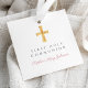 Individuelle Name Elegant Pink Script Cross Erste Kommunion Gunst Tags.