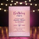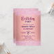A modern design featuring elegant calligraphy on a pink metallic background with rose glitter. Customize the details for a chic Birthday Celebration.