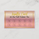 Treat your clients to a stylish rewards experience with this elegant rose gold lash loyalty card. Designed with a gold frame, soft blush gradient background, and eyelash stamp circles, this card helps you grow loyalty while keeping your branding cohesive. Collect 9 stamps and receive the 10th treatment free — perfect for lash refill programs, beauty treatments, or salon rewards. Fully customizable for your business.