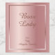 Use this elegant wine label on a bottle of fancy wine or champagne to a special boss recipient. The label has a faux rose gold background and says Boss Lady. There is room for your name. Simply replace the sample words in the template with your own.