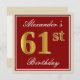 Elegant, rot, Imitat-Gold61. Geburtstag; Einladung