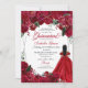 Elegant Rot & Silver Floral Quinceanera Geburtstag Einladung