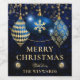 Elegant Royal Blue & Gold Baubles Frohe Weihnachte Weinetikett