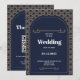 Elegant Royal Blue Gold Lace QR Code Wedding Einladung