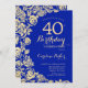 Elegant Royal Blue Gold Rose 40. Geburtstag Einladung