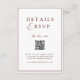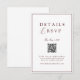 Elegant, refined, and effortlessly modern – this minimalist wedding RSVP and details card features a clean white background, timeless typography, and a discreet QR code for seamless online responses.