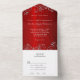 Elegant Ruby Red Gray Swirl Wedding All In One Einladung