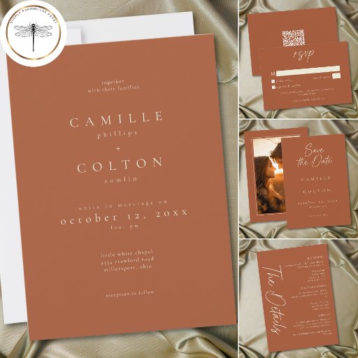 Elegant Rust Terracotta Minimalist Wedding Save The Date