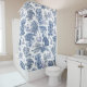 Blaues, pastorales toiles Muster mit jungen Männern und Frauen, die im Wald arbeiten und sich entspannen für die ländliche rustikale Dekoration, Geschenkpackung, Kunsthandwerk..