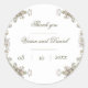 Fügen Sie Ihren Gastgeschenke Hochzeiten eine charmante Touch mit diesem eleganten, rustikalen Blumenmotiv mit einem Aufkleber hinzu. Dieses Design mit weichen Vintagen Blume und klassischer Kalligraphie-Schrift hebt die Namen der Ehepaare und das Hochzeitsdatum in einem romantischen Stil hervor. Ideal zum Versiegeln von Umschlägen, Dekorieren von Geschenktüten oder zum Hinzufügen persönlicher Details zu Ihren Hochzeitsgeschenken. Voll anpassbar für den Anzug Ihres besonderen Tages.