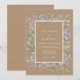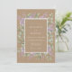 Dieses Design verfügt über einen warmen, erdtonigen Hintergrund, der eine schöne Grundlage für die floralen Elemente bietet. Zarte Zweige von violetten Flieder und weichen grünen Eukalyptusblättern sind um das Zentrum herum angeordnet. Intricate weiße, spitzenähnliche Details verleihen einen Hauch von vintage Eleganz. Perfekt für eine rustikale Outdoor-Veranstaltung, kombiniert die Farbpalette Tan, Lavendel und Salbei-Grün.