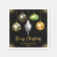 Bring bold style to your holiday table with this black and gold Christmas napkin featuring five hanging ornaments in striking patterns - leopard print, zebra stripes, tropical leaves, giraffe print and foliage. Suspended from beaded golden strings against a star-speckled black background, this design blends festive charm with modern, exotic flair. Ideal for winter parties, holiday dinners, or upscale seasonal events.