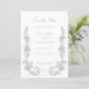 Elevate your special day with this elegant, sage green classic floral design featuring baroque-style scrolls with columns of toile roses and foliage. Includes text fields for your initials.