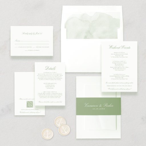 Elegant Sage Green Script Names Wedding Einladungsbanderole