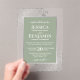 Invite your loved ones to share in your joy on your wedding day with these gorgeous acrylic invitations. The stylish sage green & silver design features your names prominently displayed in block letters while the introduction and other notes feature fancy script calligraphy with swashes on the ends of the letters. The text is displayed on a sage colored background inside of a sliver-gray frame. The outside border of the invite is transparent acrylic with ornate silver faux foil decorations in the corners. Elegant, classy, sophisticated and beautiful, these wedding invitations are sure to leave a lasting impression.