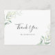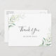 Elegante botanische Hochzeit Dankeschön Postcard mit einer einfachen Anordnung mit einem Hauch von Eukalyptusgrün in einem schönen Schatten von Salbei grün in der oberen links Ecke und unten rechts neben Ihrem Namen und Hochzeitstag. Eine einfache und moderne Wahl, die sich perfekt für eine Hochzeit im Frühling oder Sommer eignet.