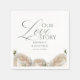 Modern stylish wedding welcome napkins, with elegant watercolor floral sage greenery and dusty white garden roses, elegant modern hand drawn calligraphy. Classy and elegant, soft and modern napkins.