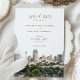 Mit dieser raffinierten Rett-the-Date-Einladung mit der atemberaubenden Skyline von San Antonio, Texas, kündigen Sie Ihre bevorstehende Hochzeit an. Die Karte zeigt eine wunderschöne Aquarellillustrierung des pulsierenden Stadtbildes San Antonios und unterstreicht seine einzigartige Mischung aus historischer und moderner Architektur inmitten üppiger Vegetation. Der Text wird elegant in einer Mischung aus klassischen Serifen und zarten Script-Schriftart präsentiert, wobei Farben wie gedämpftes Gold, Olivgrün und warme Terrakotta verwendet werden. Diese Einladung eignet sich ideal für Paare, die eine zeitgenössische Hochzeit in der Stadt planen und das Wesen von San Antonios Charme mit künstlerischer Eleganz erfassen.
