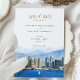 Mit dieser raffinierten Rett-the-Date-Einladung mit der atemberaubenden Skyline von San Diego, Kalifornien, kündigen Sie Ihre bevorstehende Hochzeit an. Die Karte zeigt eine wunderschöne Aquarellbilder von San Diegos pulsierendem Stadtbild, Set vor dem Hintergrund des ruhigen Pazifiks und der majestätischen Berge. Der Text wird elegant in einer Mischung aus klassischen Serifen und zarten Script-Schriftart präsentiert, wobei Farben wie gedämpftes Gold, Olivgrün und warme Terrakotta verwendet werden. Diese Einladung eignet sich ideal für Paare, die eine zeitgenössische Hochzeit an der Küste planen und das Wesen von San Diegos Charme mit künstlerischer Eleganz erfassen.