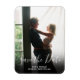 Dieses moderne Skript-Foto speichert den Datums-Magneten mit einem kompletten Foto überlagert mit einem Skript Save the Date über Ihren Namen, Datum und Ort in weißem Text. Entwickelt von Thisisnotme©