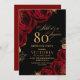 Elegant Schwarz und Rote Rosen Floral 80. Geburtst Einladung