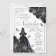 Elegant Schwarz und Silver Floral Quinceanera Invi Einladung