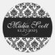Elegant Schwarz-weiß Damask Wedding Gefallen Runder Aufkleber