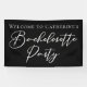 Dieses elegante schwarze Junggesellinnenabschied-Banner enthält eine schicke weiße Typografie für eine moderne Braut, die mit ihren Brautjungfern ein exklusives Ereignis feiert. Trendige personalisierte minimalistische Junggesellinnenabschied-Dekoration.