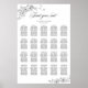 Elegantes Calligraphy Scrip 20 Table Rose Hochzeitsdiagramm. Vintages Schwarz-Weiß-Blütenzeichen 20 Hochzeitssitze Begrüßungszeichen