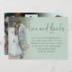 Elegant Script 6 Photos Wedding Love Thanks Thank You Sage Green Love and thanks is in a set handwritten style. Easily personalise the rest of the text to your own details and replace the six sample photos on the front and back with your own as keepsakes for your guests.