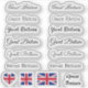 Countour Stickers: Elegantes Script Name Set - Großbritannien & Britische Flagge (UK Union Jack) - individuelle Name in 6 x 2 verschiedenen Handschriften persönlichen Schriftart. Coole, handgeschriebene Aufkleber in schwarz können Sie Ihre Artikel markieren, Namen mit persönlicher Touch / Name kann kostümiert werden