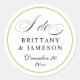 Elegant black and white wedding sticker with "I do" in calligraphy and editable gold border accent. Customize the background color as well.