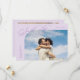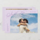 Elegant and stylish save the date card featuring a script text that says "save the date." One photo in the font and one on the back. The background is lilac.