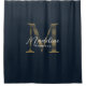 Elegant Script Metallic Navy Blue Gold Monogram Shower Curtain