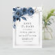 Elegant Script Navy Blue Floral Photo Wedding Save The Date
