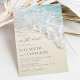 Perfect for destination weddings, this elegant summer beach wedding invitation with classy beautiful handwriting script features a close-up photo of a beach shoreline with an ocean wave and seafoam.