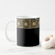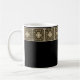 This handsome mug features a bold border of Spanish tiles in warm gray brown tones on an intense black background. Perfect for more a masculine decor.