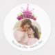 🌷🌷🌷 Elegant Shiny Pink Queen Crown Happy mothers day Large Circle Adhesive / Waterproof Labels & Stickers: