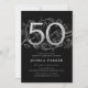 Elegant silberschwarz 50. Geburtstagsfeier Einladung. Individuell anpassbares modernes feminines Design mit Rose botanischen Akzenten und Imitaten Glitzer Silber. Einfache florale Einladungskarte perfekt für eine stilvolle Damenfeier. Personalisieren Sie Ihre persönlichen Daten. Gedruckte Zazzle Einladungen oder Sofortdownload digitalen druckbaren Vorlage.