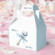 Elegant Silver Blue Rattle Bow Baby Shower Geschenkschachtel