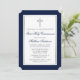 Elegant Silver Cross Blue First Communion Einladung