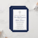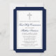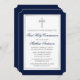 Elegante Navy Blue und Silver First Heilige Kommunion Einladung mit Kreuz. Silberrahmen. Silberkreuz. Ticket Style.