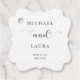 Minimal und elegant Hochzeitsfavorit Tag mit Imitaten silberne Kalligraphie Skript. Personalisierbar