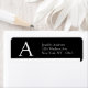 Einfaches elegantes Monogram Address Label Design von Elke Clarke ©2010. Passen Sie Ihre Monogramm-Initial-, Name- und Adressdaten an. Wählen Sie die Hintergrundfarbe für Ihre Hochzeitseinladungen aus.