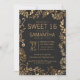 Elegant Simple Black Gold Floral Sweet 16 Einladung