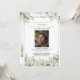 The invite features a portrait photo and place for custom text on the back. Green eucalyptus leaves symbolizes remembrance, peace, and strength.