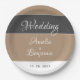 Elegante, schlichte, beige Script-Hochzeitspapier-Teller. Elegantes und modernes Design in beige und dunkelgrau Farben. Trendy Drehbuch in weiß - fügen Braut`s, Groom Namen und Hochzeitstag.