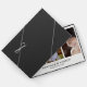 Personalisiertes Elegantes Foto Hochzeitsbuch mit schwarz-weiß und grau Monogramm Initial, Braut und Bräutigam Namen und Hochzeitstag. Es gibt 3 Foto auf der Vorderseite und ein größeres Foto auf der Rückseite.
