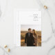 Announce your special day with this Elegant Simple Modern Photo Wedding Save the Date. This elegant design combines a minimalist black and white color scheme with a personalized photo, creating a timeless and sophisticated look. The handwritten script adds a romantic feel, making it perfect for both contemporary and rustic weddings. This double-sided card is ideal for couples seeking a chic yet understated way to remind their guests to hold the date. Whether you're planning a luxurious celebration or a simple country affair, this save the date sets the tone for a day to remember.